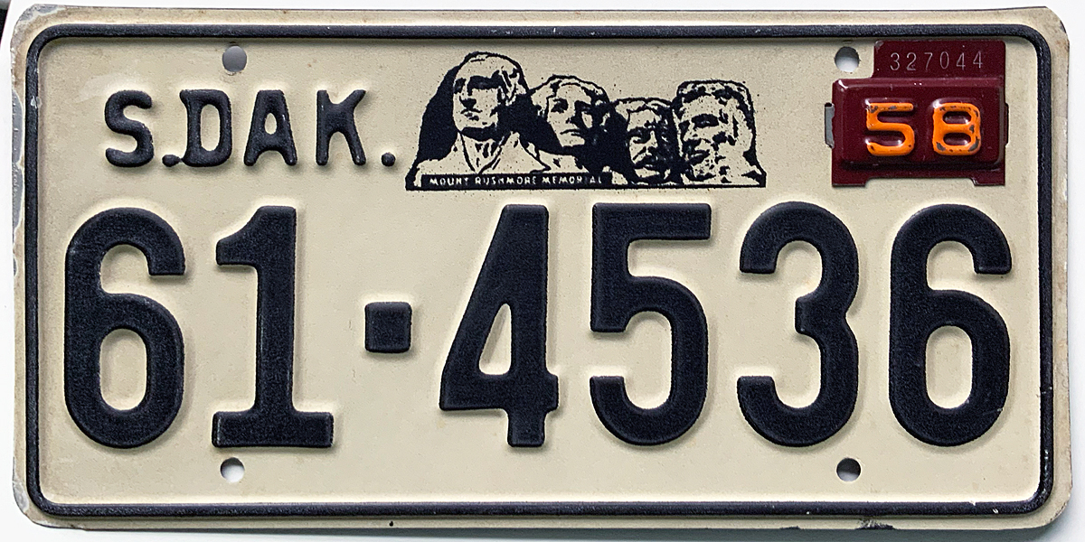 1958 South Dakota issued Turner County (57 base with 58 tab)