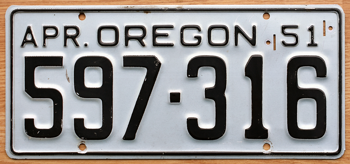 1951 Oregon (50 plate updated with 51 tab) - $50.00 (SOLD)