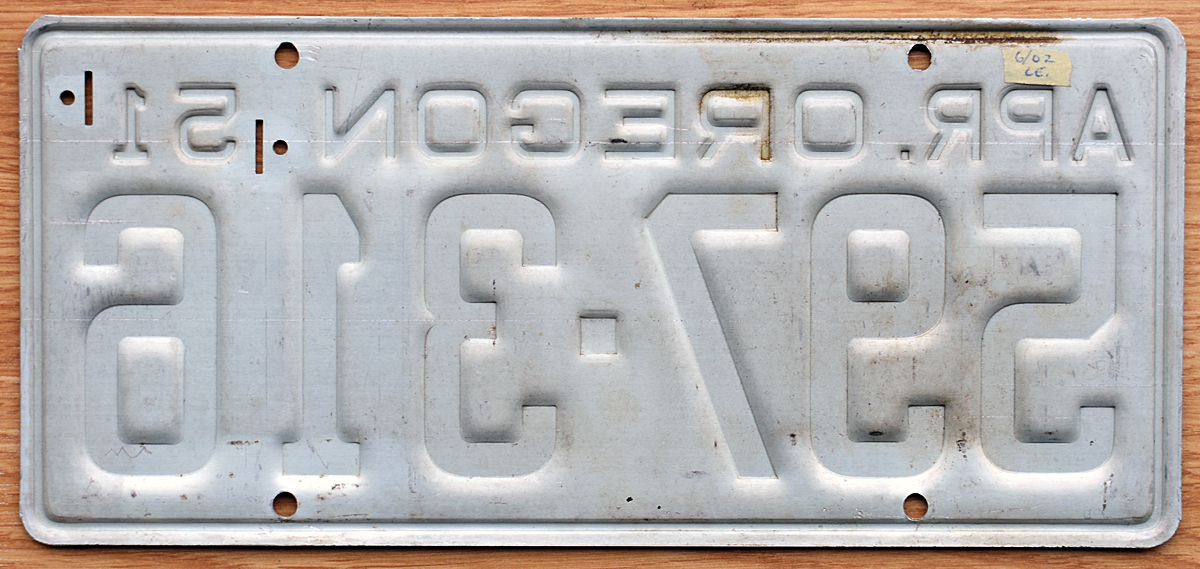 1954 Oregon (1951 plate updated with 54 tab)